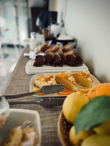In un ampio spazio apposito per le colazioni, arieggiato, all'ombra. Per vostro relax mattutino